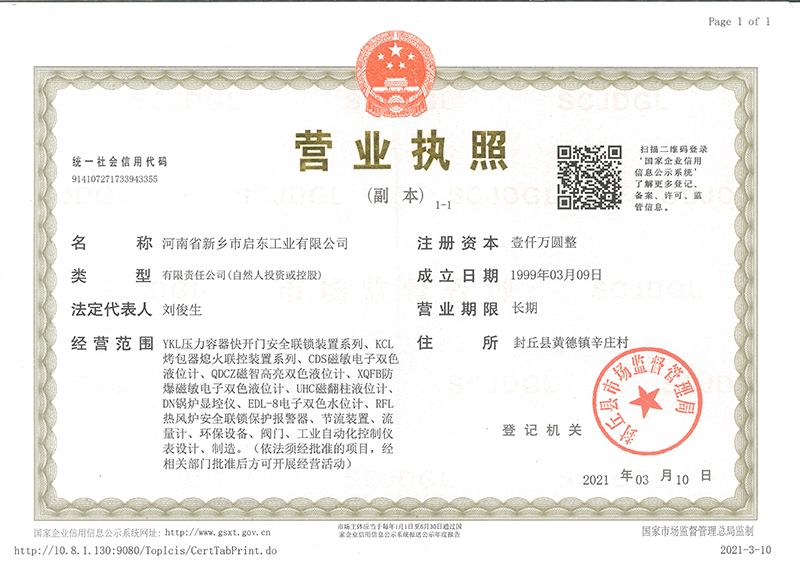 河南省新鄉市啟東工業有限公司始建于1987年,是專注研發、生產自動化儀器儀表(主要與壓力容器、鍋爐等容器配套使用)的廠家。主要產品有液位計(磁敏雙色型、磁翻柱型等)系列、烤包器熄火聯控裝置系列、壓力容器快開門安全聯鎖保護裝置系列、鍋爐報警器系列。二十多年來,公司產品暢銷國內并遠銷俄羅斯、蒙古與東南亞,深得廣大用戶的信賴和好評。我們多年來致力于自動化儀器儀表的研制生產,公司現具有完善的生產、試驗、檢測手段和設備??萍紕撔隆⒄\信服務,是我們不變的經營理念,我們將以強有力的技術支持及售后竭誠為客戶提供良好的服務?! ?012年我公司成功研發了KCL系列烤包器熄火聯控裝置,并于2013年2月2日榮獲中華人民共和國國家知識產權局辦法的《實用新型**證書》<**號:2021202257735>該產品廣泛應用于唐鋼等大型鋼鐵企業,為烤包器安全作業提供了有力的保障?! ?002年我公司成功研發磁敏電子雙色液位計獨特的高亮度LED紅綠雙色顯示,獲得了專家的首肯和用戶的一致好評。在此基礎上我公司研發人員十年磨一劍,致力于XQFB-1防爆型磁敏雙色液位計的研發,于2013年12月27日由國家防爆電器產品質量監督檢驗中心檢驗合格并頒發防爆合格證書<編號:cnex19.0883>。該產品性能得到了充分的發揮,廣泛應用于含有Ⅱ類A·B級T1-T4組可燃氣體或蒸汽與空氣混合形成的爆炸性混合物的0區、1區危險場所。連接用戶DCS或PLC系統實現遠距離集中顯示和控制,從而實現節能、數字化管理。為用戶增加了一定的經濟效益和社會效益,。2014年公司成功申請了夢潤儀表的logo,新的品牌新的形象,夢潤儀表是啟東的LOGO, 歡迎新老用戶前來洽談合作?! ∥覀円蝗缂韧刈⒅乜蒲械耐度?,憑借產品的不斷更新、加大科技含量,進一步拓展市場。我們相信品質成就未來,以過硬質量、優惠價格、完善的售后服務熱忱歡迎廣大客戶來我司視察指導、洽談業務;精誠合作,共創輝煌!